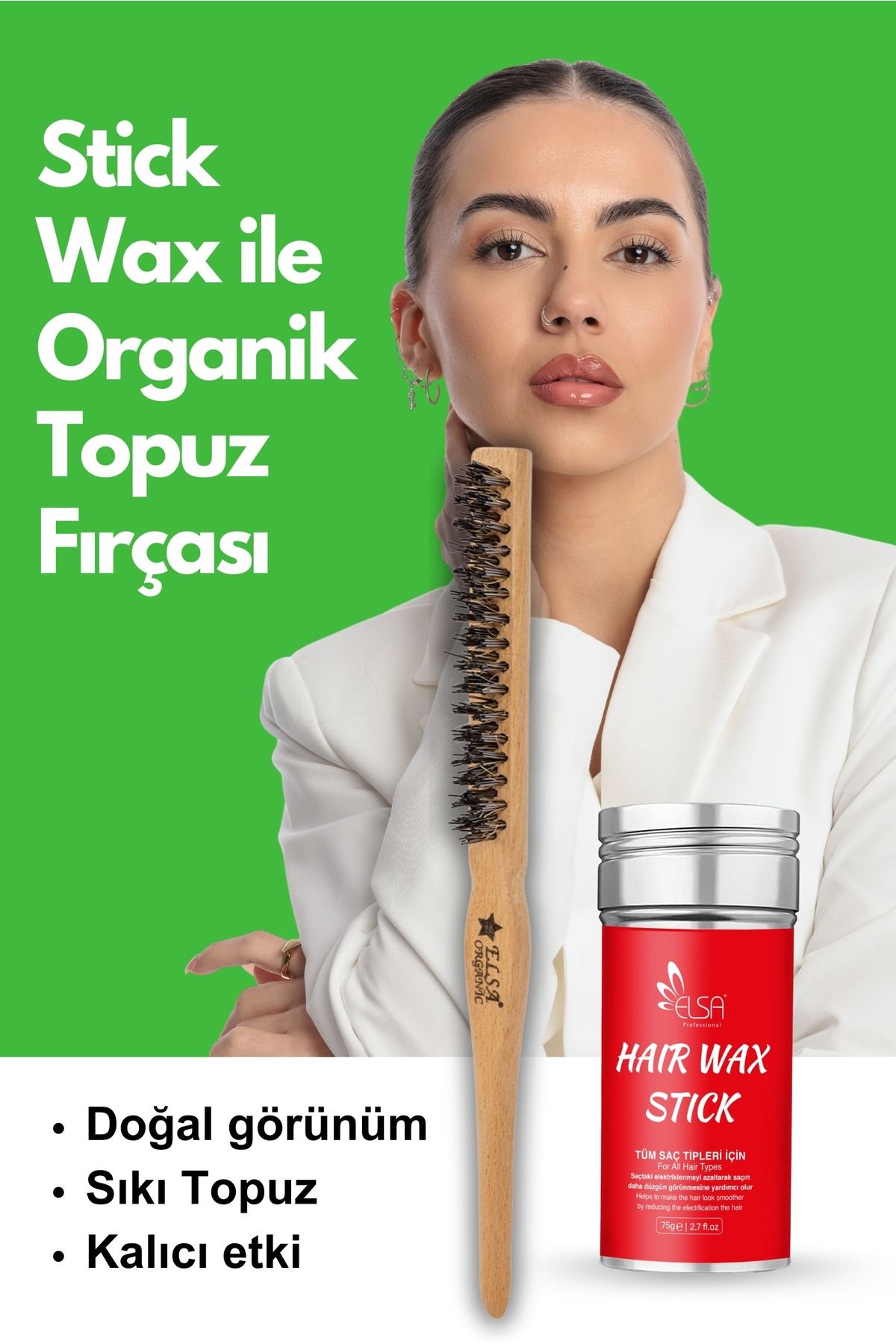Professional Hair Wax Stick 75gr – Saç Sabitleyici ve 131 Organik Topuz Fırçası 2’li Set