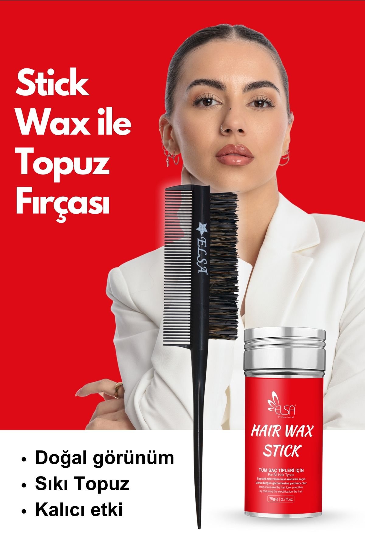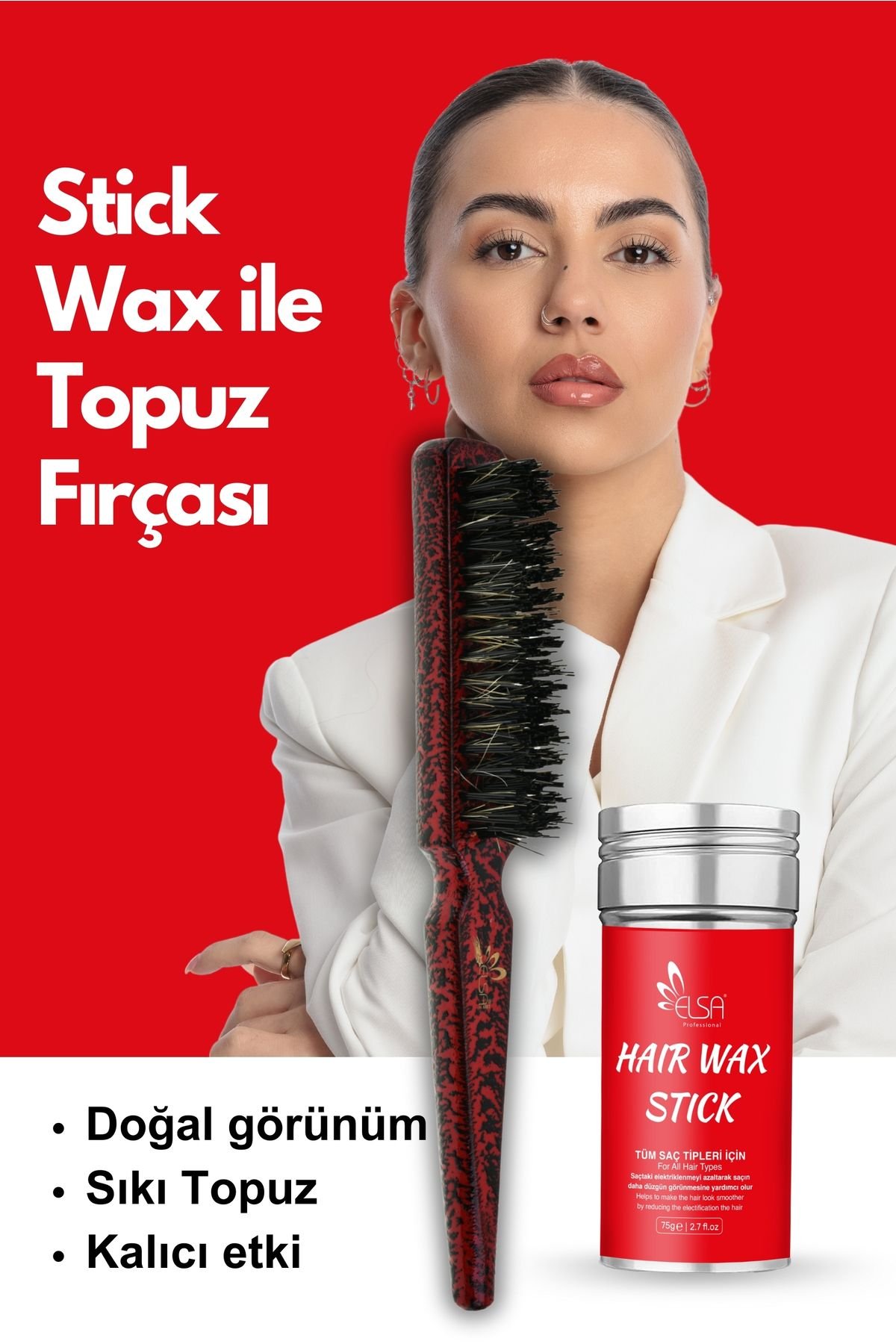 Professional Hair Wax Stick 75gr – Saç Sabitleyici ve 131 Topuz Fırçası 2’li Set